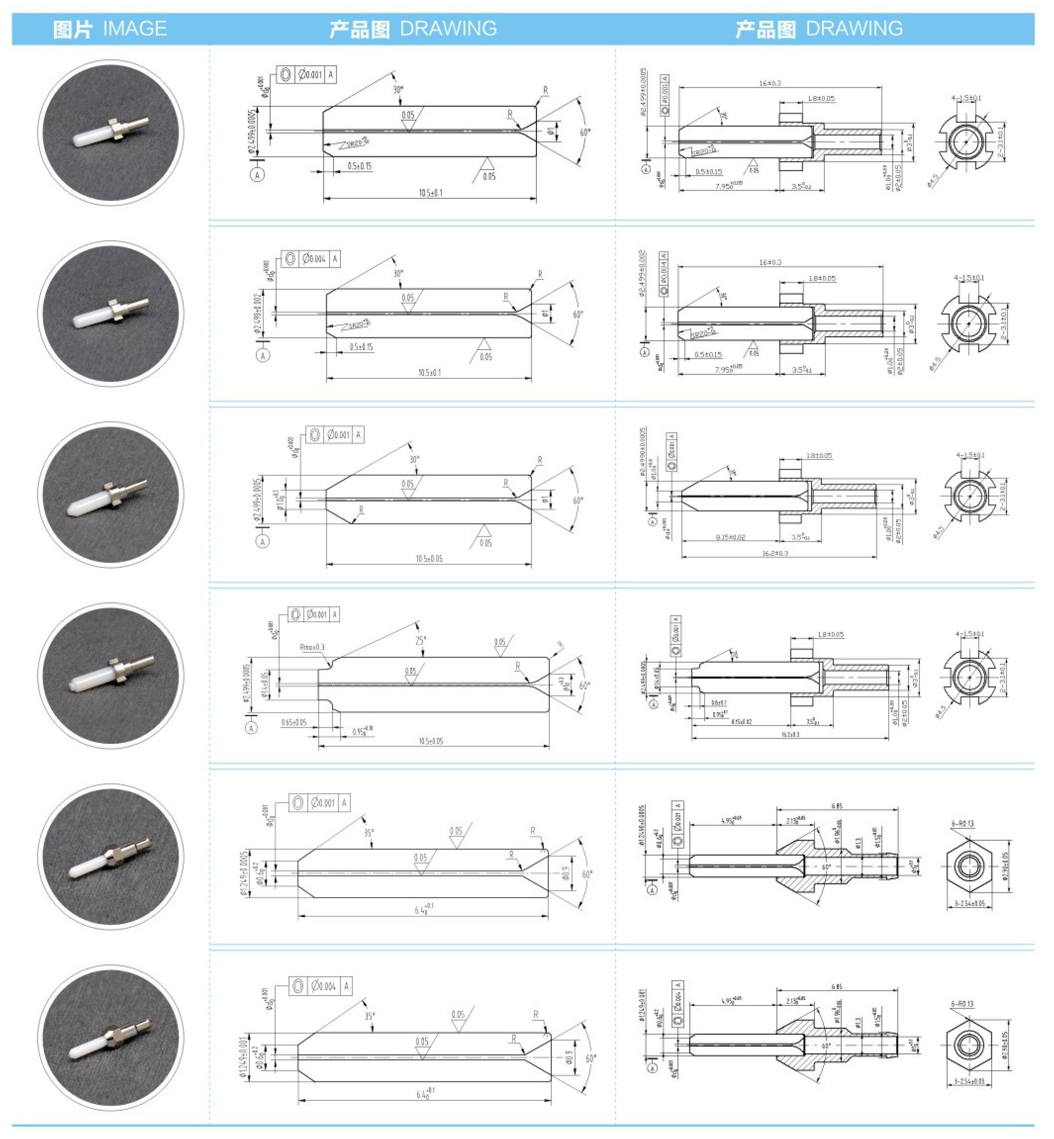 各種規(guī)格插芯、多種插芯端面形式