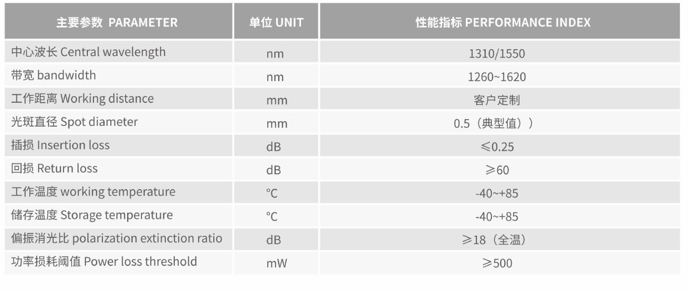保偏光纖準(zhǔn)直器屬于光纖通訊光器件的用于輸入輸岀的一個(gè)光學(xué)元器件,光纖傳出的發(fā)散光裝置通過前置的類似凸透鏡變成平行光(高斯光束)。它的作用是使光最大效率的耦合進(jìn)入所需的器件中或易如接受光信號(hào)最大效率的接受。